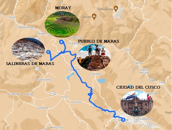 - Recorrido: Visita a Moray y sus andenes, seguido de las Salineras de Maras.